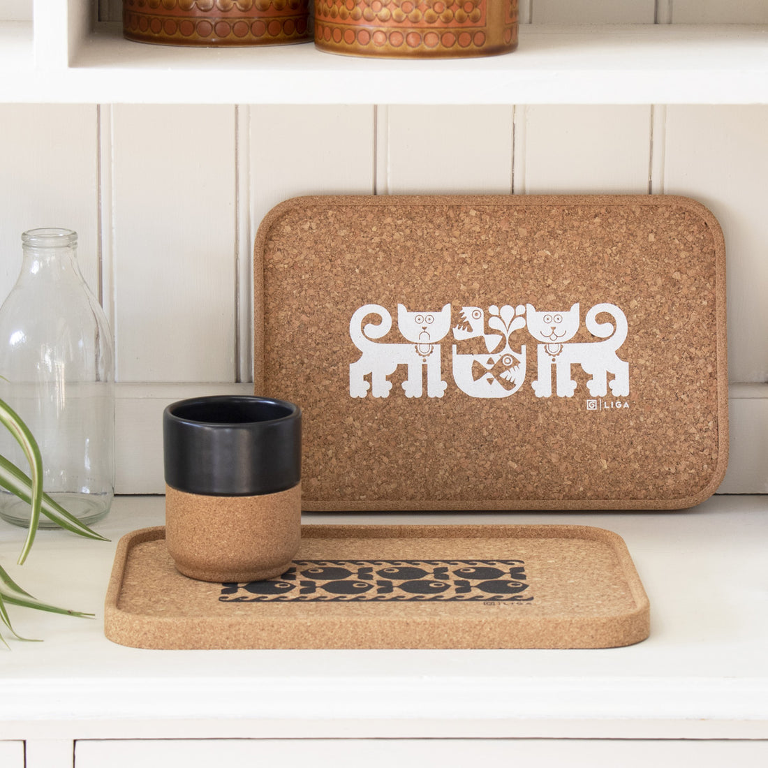 Liga x Hornsea Cork Drinks Tray - Happy Cat Sad Cat